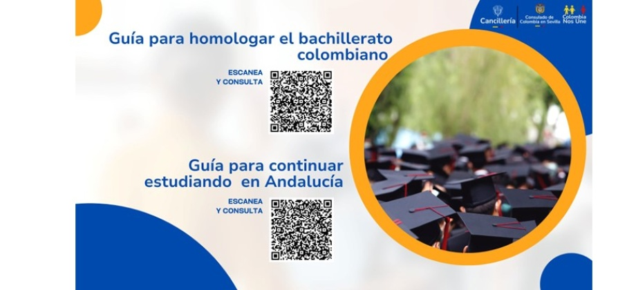 Dos de las consultas más frecuentes de la comunidad colombiana en nuestra circunscripción son: cómo realizar el proceso de homologación del bachillerato colombiano en España y cuál es la ruta para continuar los estudios en este territorio de acogida. Por tanto, en el Consulado de Colombia en Sevilla, elaboramos dos guías que atienden esta necesidad de información. Así la comunidad migrante colombiana en esta circunscripción encamina sus objetivos e inserción académica, como un aliciente para avanzar en este proceso migratorio. Lea atentamente las siguientes guías: